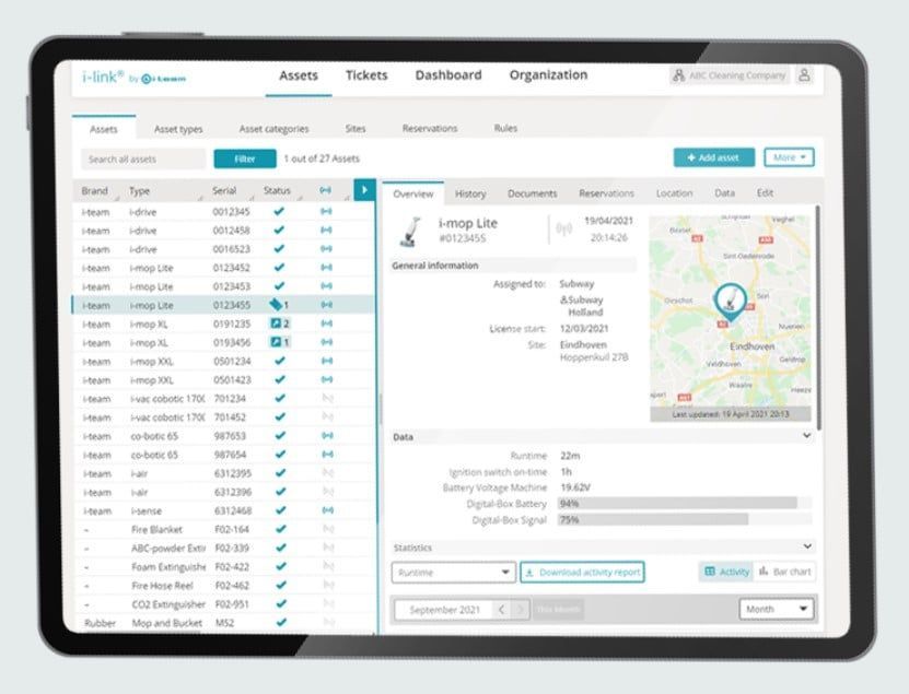 i-link is the new cloud-based management platform for your cleaning equipment. New i-mops have small transmitters located inside them, already intergrated with the i-link cloud. These transmitters will send usage information, battery levels, and even the location of the machines to the i-link cloud every day. It''s also possible to set rules for notifications (e.g. reminders for maintenance after X hours of use) and to troubleshoot an issue with the machine to your i-partner.